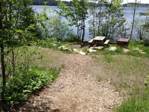 These beautiful campsites are located near the lake and require that camping equipment be carried to the site. A 12'x16' platform is provided for your tent. A rope is needed to tie down the tent. Each site has space for eight (8)people. A picnic table and fire ring are also provided. Biffies are located nearby. There is a centrally located shower house with modern bathroom conveniences. These sites do not have any electrical hookups, but nearby refrigeration and food storage are available. Dishes and cookware are provided.