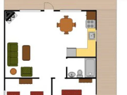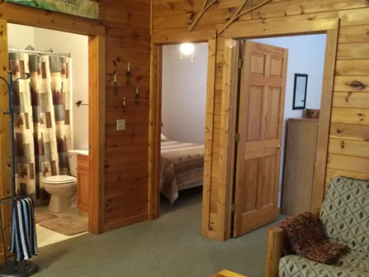 This 2-bedroom cabin in North Point Village is heated for year-round usage, features a full kitchen, living room, and bathroom, and boasts lake views. Flat and Fitted sheets are included for each bed. Pillows, blankets, and towels are not included.