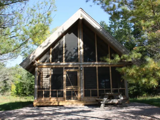 In 2009 the North Star cabin was built to meet the demands of a growing camp. It has two bedrooms, a sleeping loft, a kitchen, a bathroom, a dining area, and a living area with a gas fireplace. There is also a fabulous screened porch.